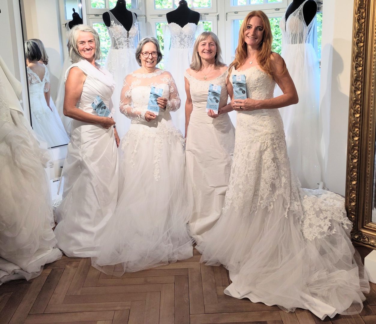 Gioachino Rossinis wundervolle Oper La Cenerentola (mtvo-Premiere am 3. Oktober) basiert auf dem klassischen Märchen von Aschenputtel. Für die Inszenierung rund um den Prinzen Don Ramiro suchte das Team von Intendant Nikolaus Netzer und Regisseur Norbert Mladek bis zu zwanzig Bräute für die Bühne – ohne Altersgrenze nach oben. Ob 18, 48 oder 78 – jede Braut war willkommen und viele haben sich gemeldet. Wer kein eigenes Brautkleid mehr hatte, durfte sich beim Ausstattungspartner SI Brautmode by AJ in Götzis aus dem großen Angebot seinen persönlichen „Traum in Weiß“ aussuchen. Jetzt heißt es: üben, proben und sich auf den großen Auftritt freuen! – Hier seht Ihr vier von ihnen, allesamt in traumhaften Roben von SI Brautmode. Ein herzliches Dankeschön für die hervorragende Zusammenarbeit mit Anna-Lena und Jasmin, hier mit „Brautvater“ Thomas sowie Marlene vom mtvo-Team.